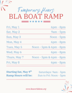 Temporary Boat Ramp Hours will begin on May 1 with Full Time Hours starting May 9.